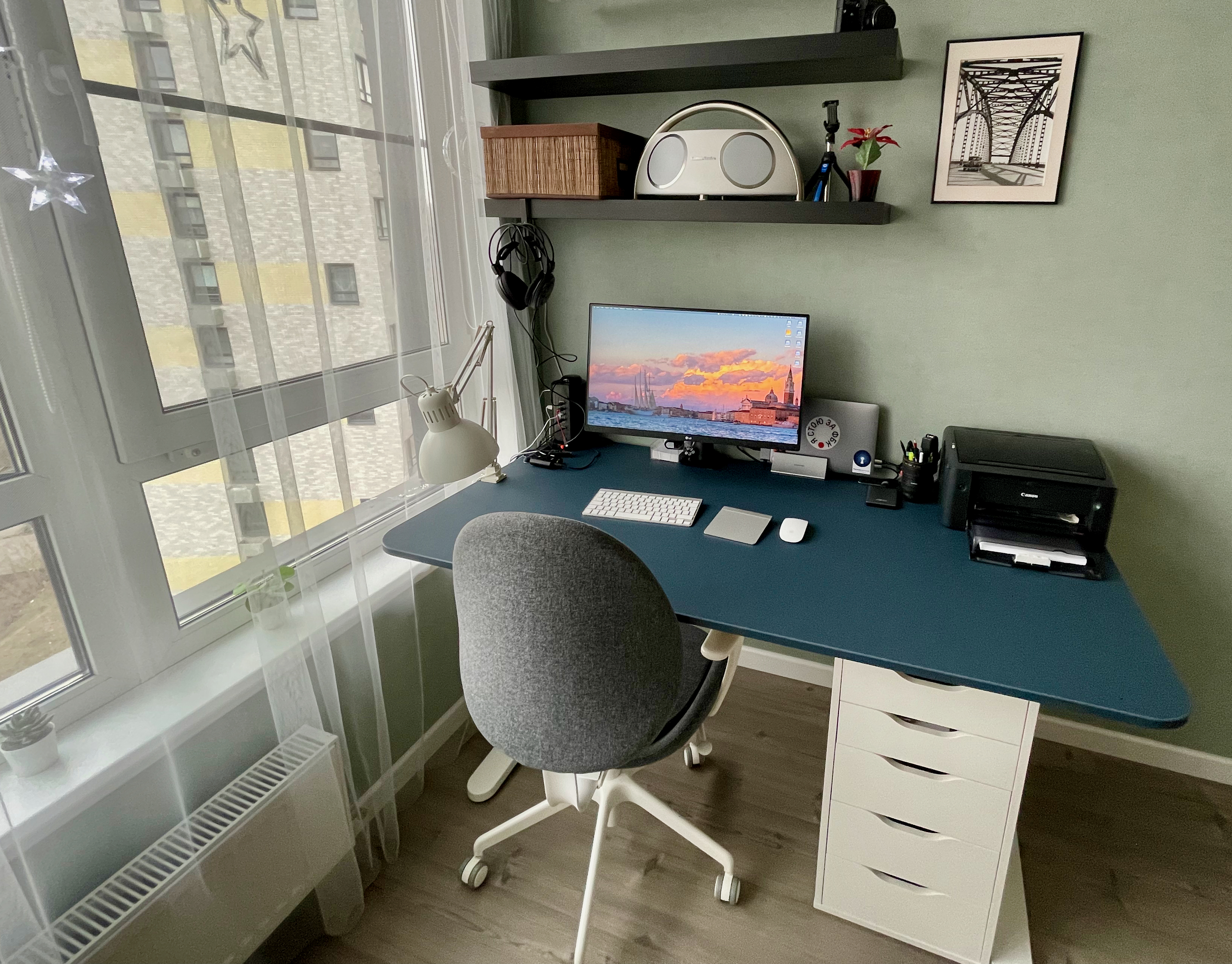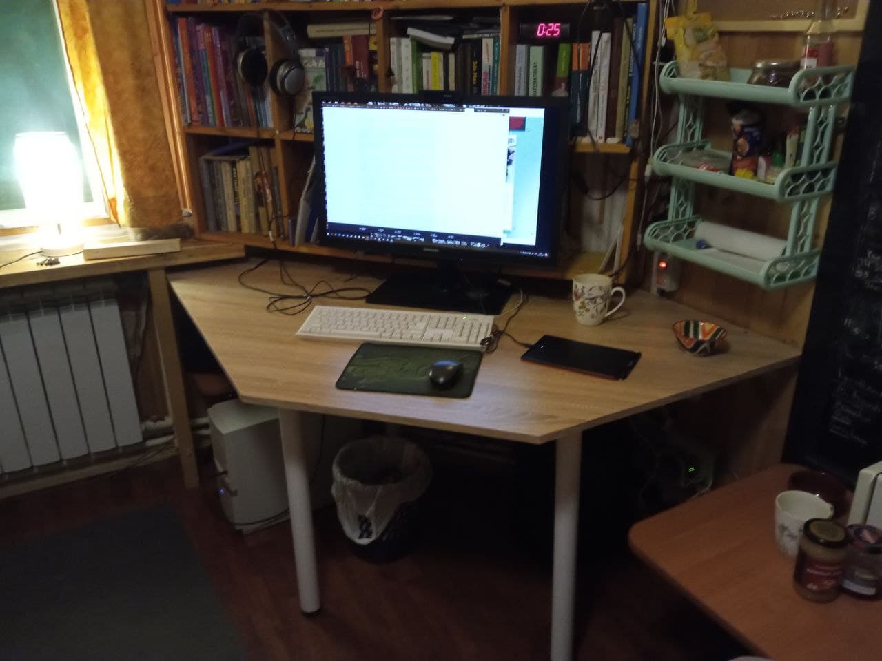 - реверанс в сторону Алекса - освещается стол найденным на Али светильником на длинной ноге с пультом. Очень удобно.