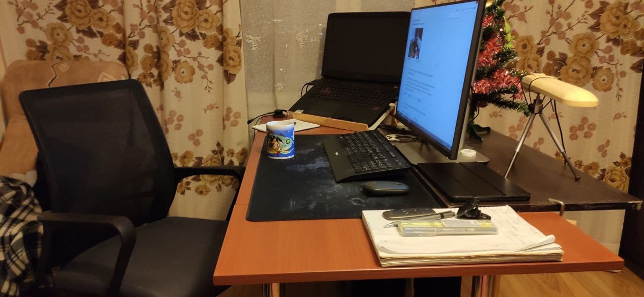 Пока приходится ютиться - компьютерный уголок у нас на двоих с женой. Она работает по будням из дома, ну а в выходные отдыхаю я. ?
