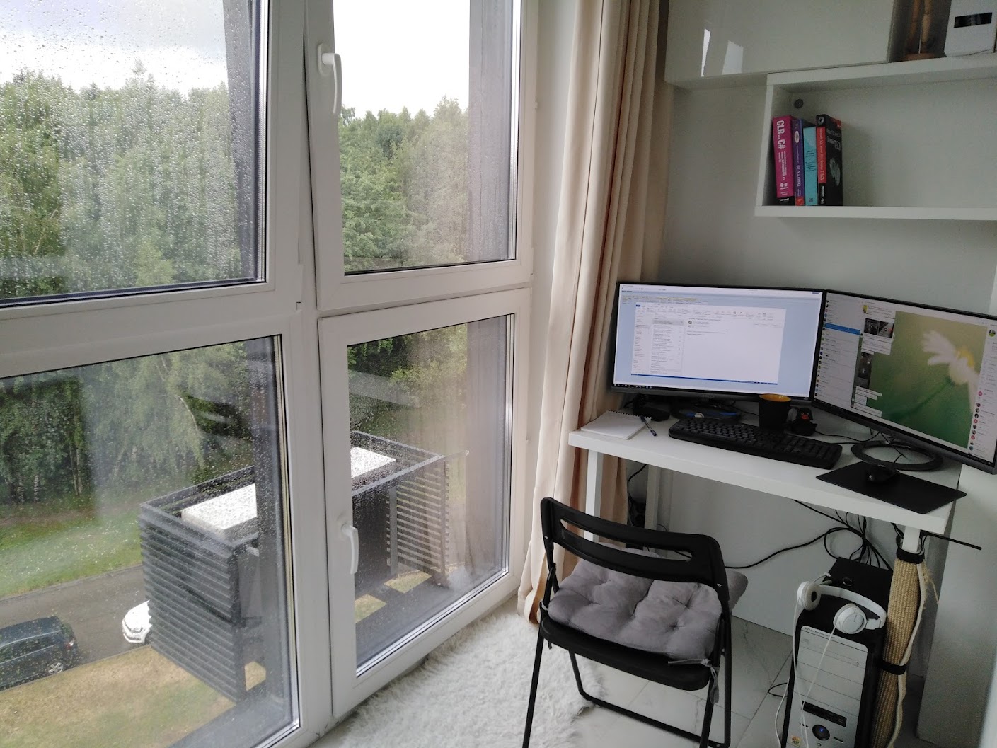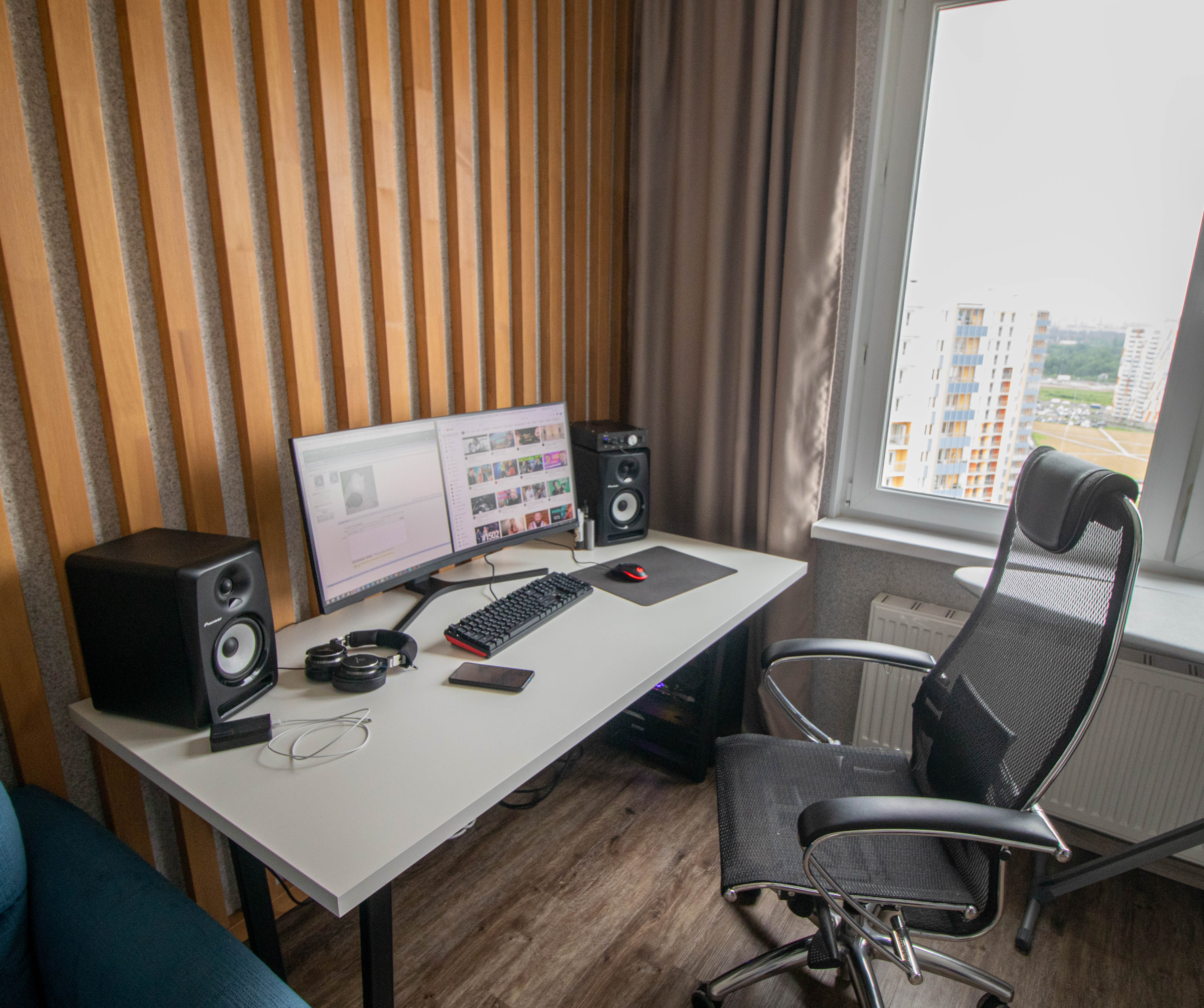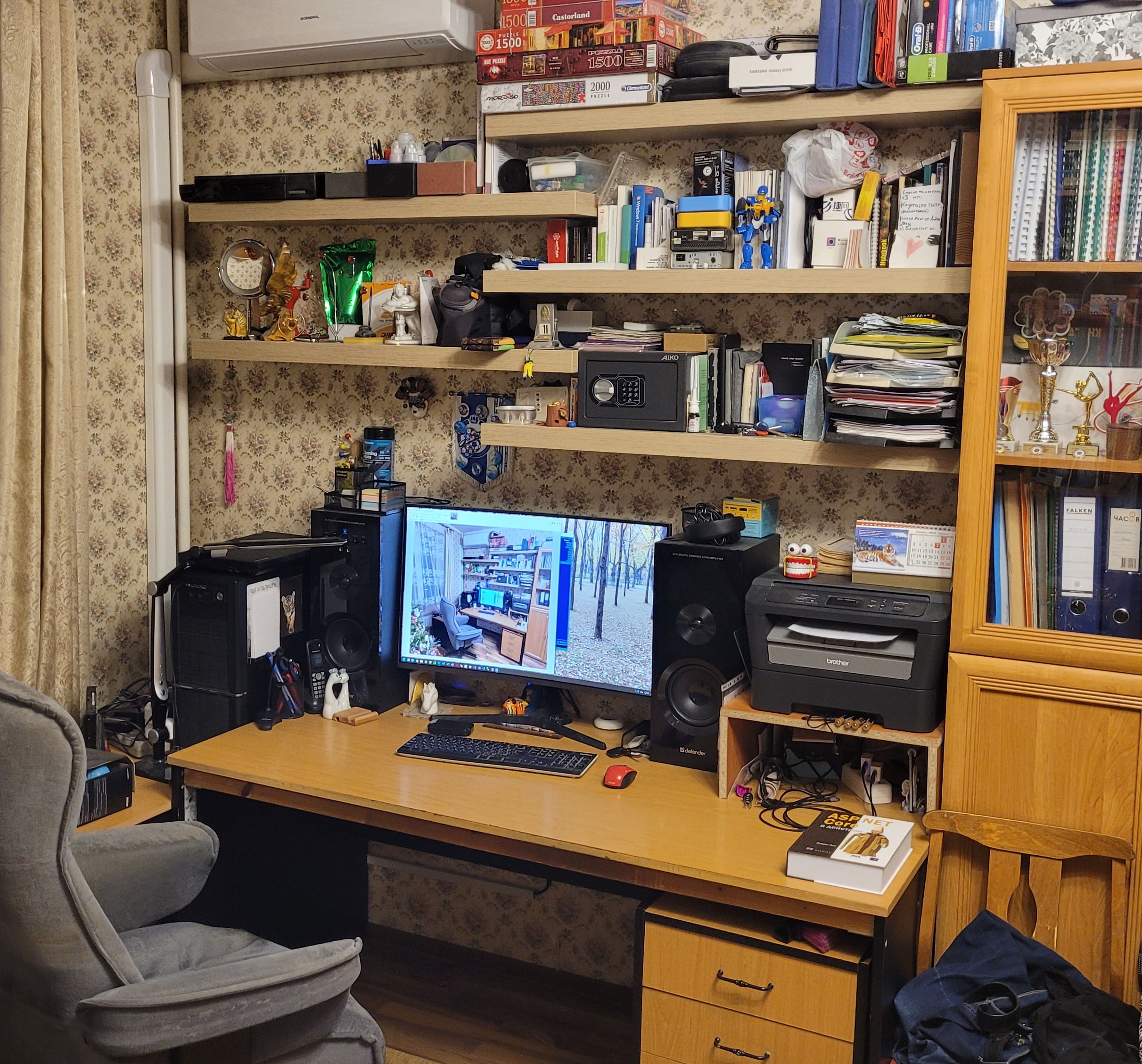 Во-вторых, я сижу спиной к стене и лицом к комнате. Не понимаю, честно говоря, рабочих мест, когда за монитором стена.
