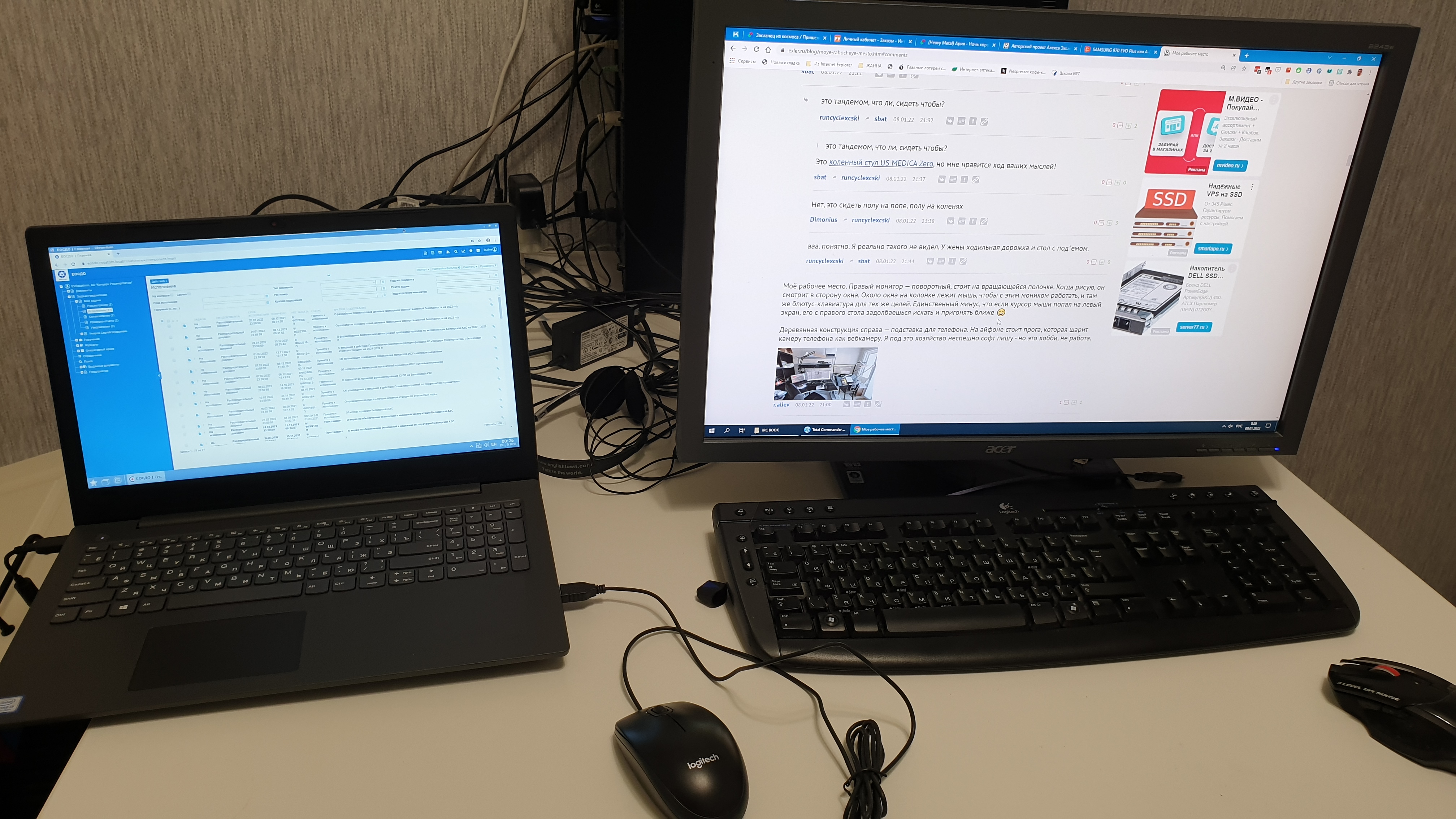 Во-первых, ноутбук с дополнительным монитором.
