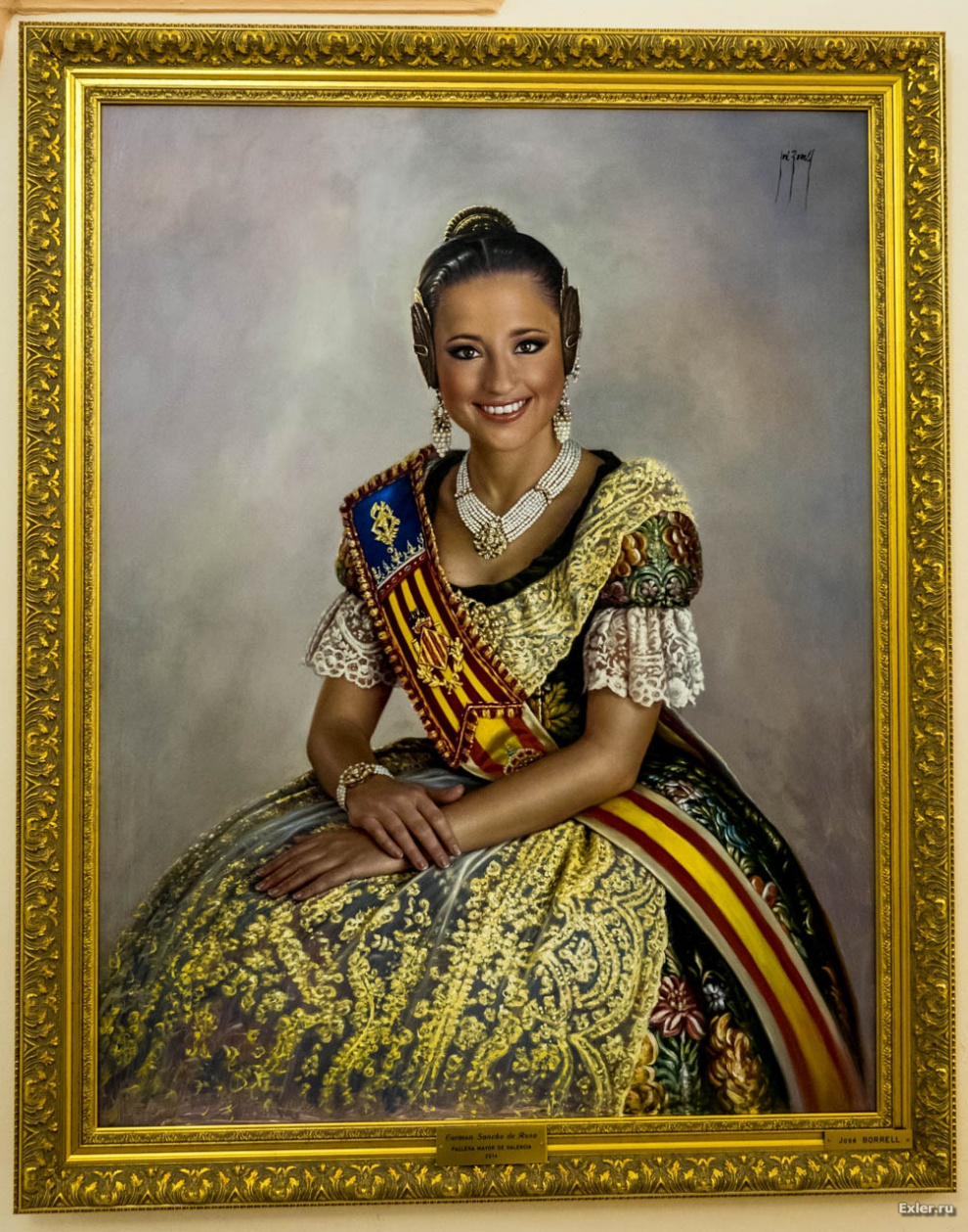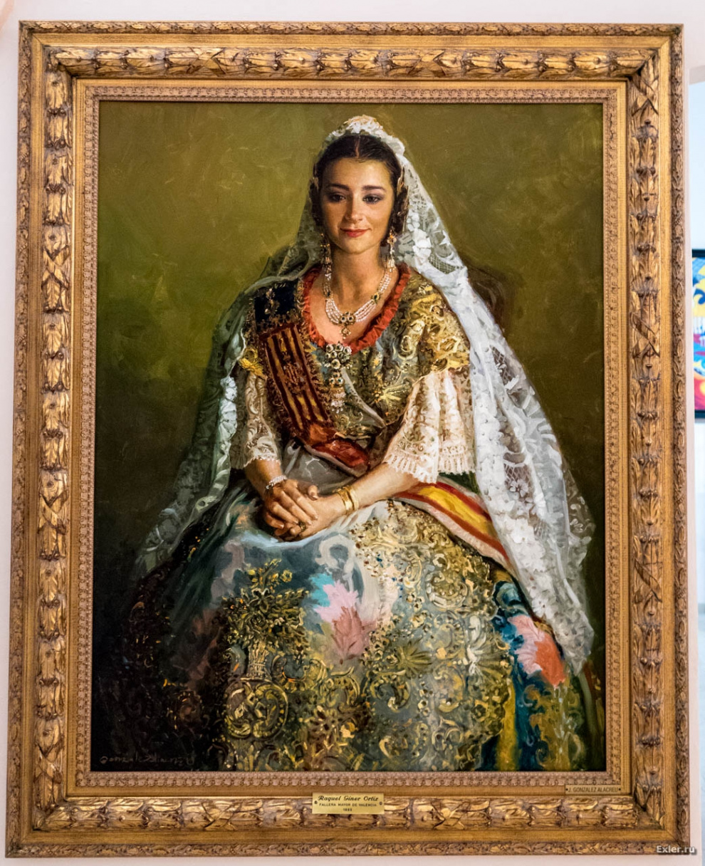 Портрет главной королевы праздника (Fallera Mayor) за 1986 год. (Королева избиралась среди нескольких претенденток.) В те времена с королев художники писали парадные портреты. В музее есть целая галерея портретов королев.