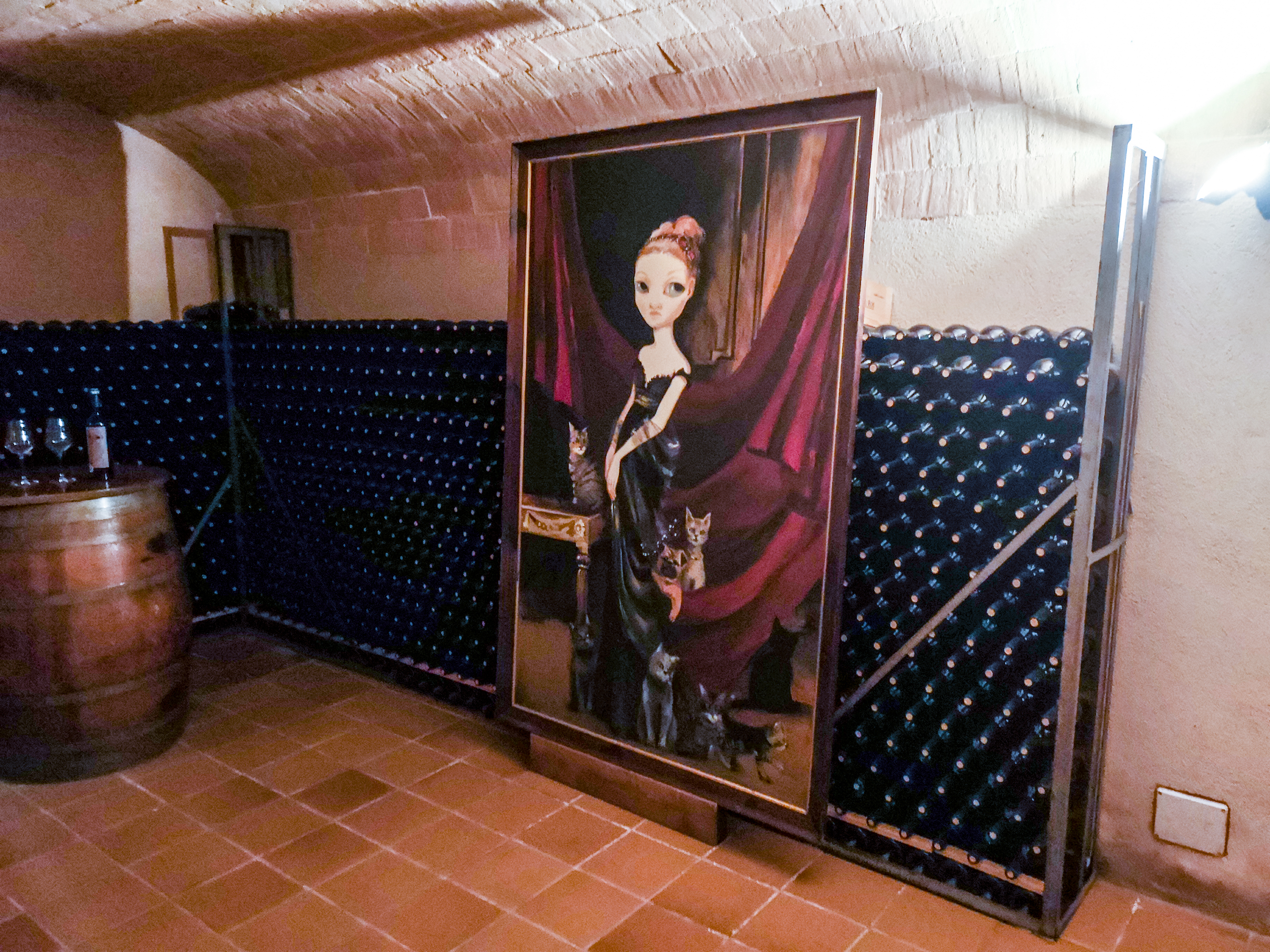 Эта картина мне очень сильно напомнила творчество одной знаменитой американской художницы. Я сначала думал, что это ее творение и есть, но мне рассказали, что это знаменитая испанская художница, которая делала дизайн этикетки одной марки вина этого хозяйства. Ну, что тут сказать? Эпигонка эта знаменитая испанская художница. Как есть эпигонка.
