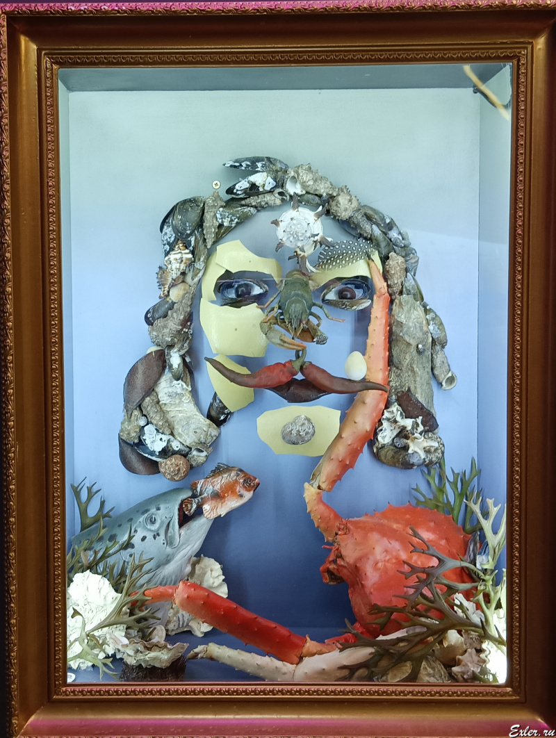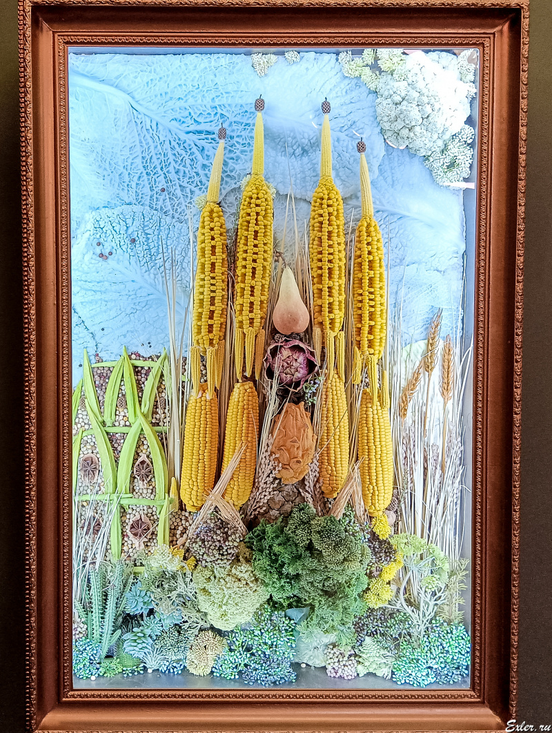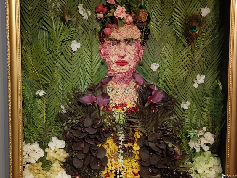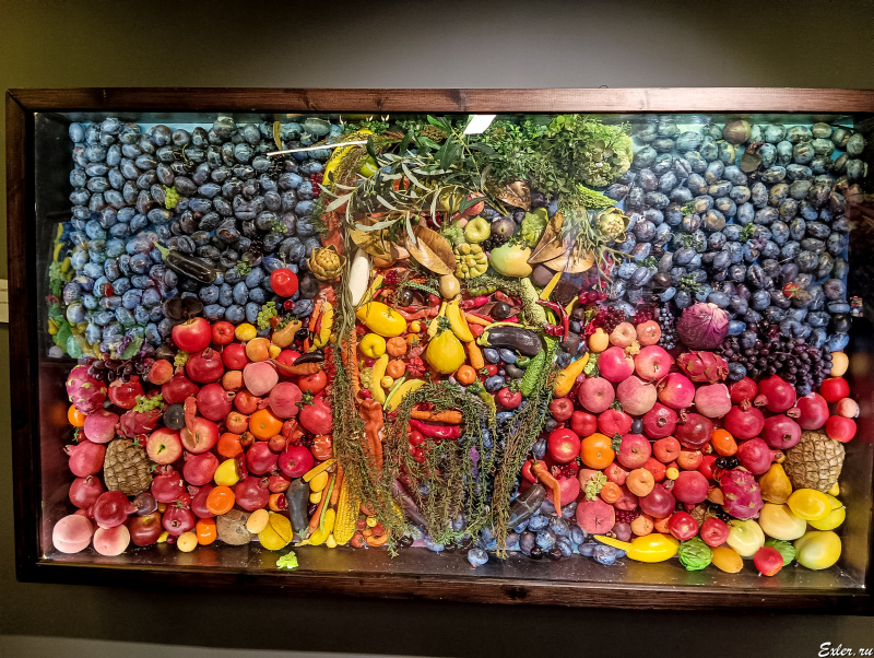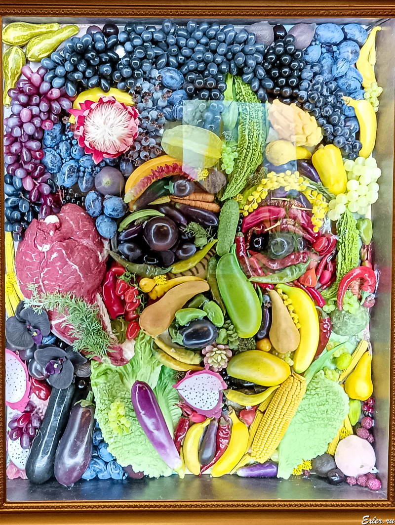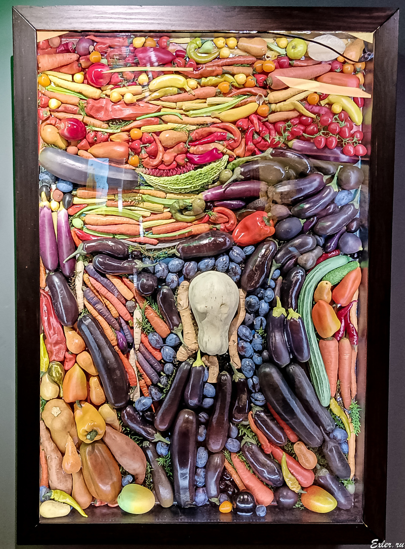 Следующий зал - портреты-инсталляции из различных продуктов.