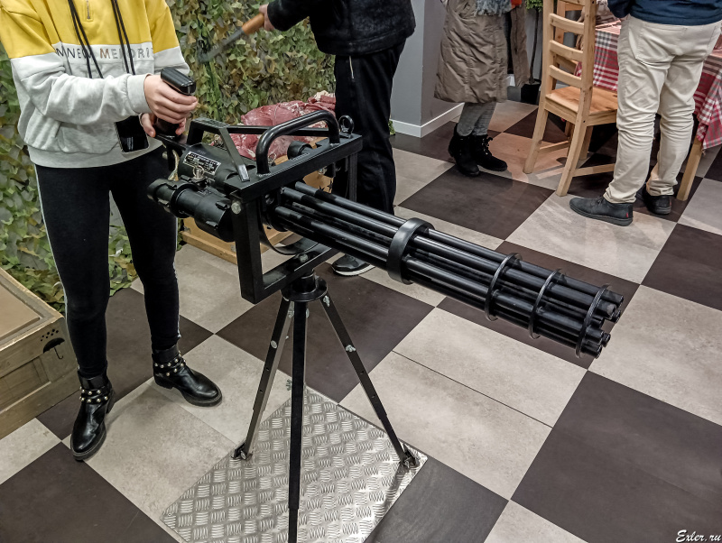 Прикольный зальчик с шестиствольным пулеметом и автоматом Калашникова.