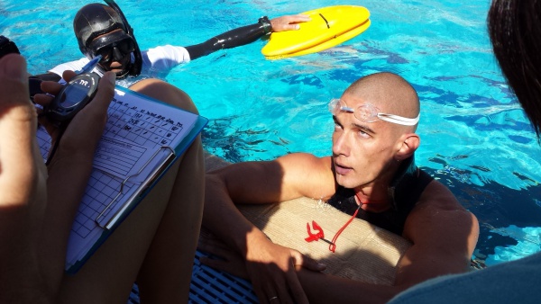 А вот у мужской сборной с первого соревнования ситуация развивалась крайне напряженно. На соревнованиях по задержке дыхания Александру Костышену не засчитали результат: судья придрался к мелкому огреху в протоколе выступления и выдал красную карточку.