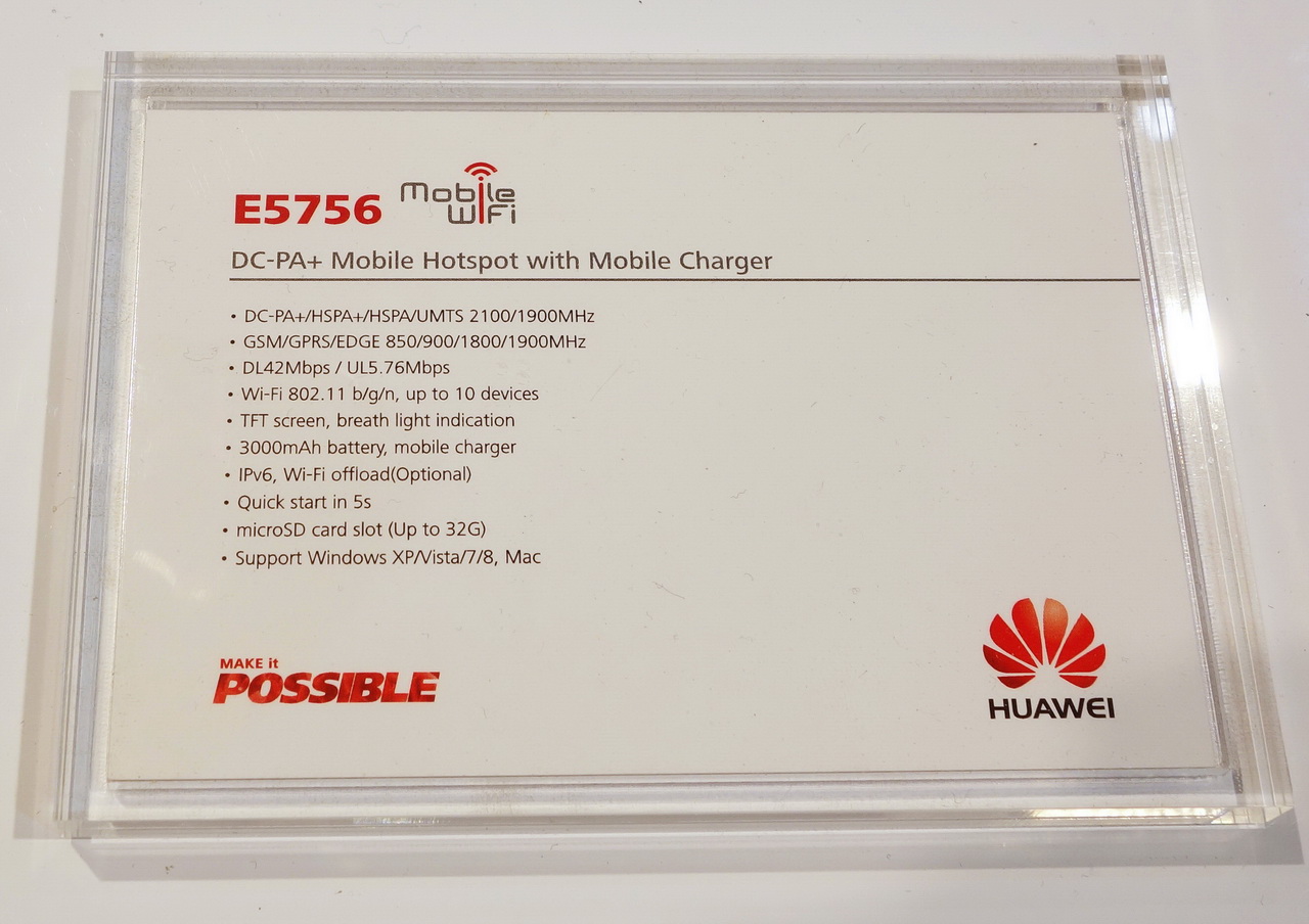 Wi-Fi донгл E355 Wingle. Написано, что первый в мире донгл с поддержкой HSPA+ и Wi-Fi 802.11a/b/g/n. В него вставляется мобильная симка, после чего донгл превращается в точку доступа Wi-Fi. Вообще подобные штуки - раздачу мобильного Интернета по Wi-Fi - сейчас делают очень многие смартфоны.