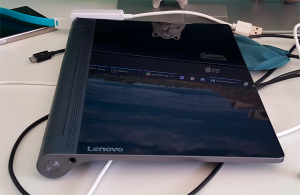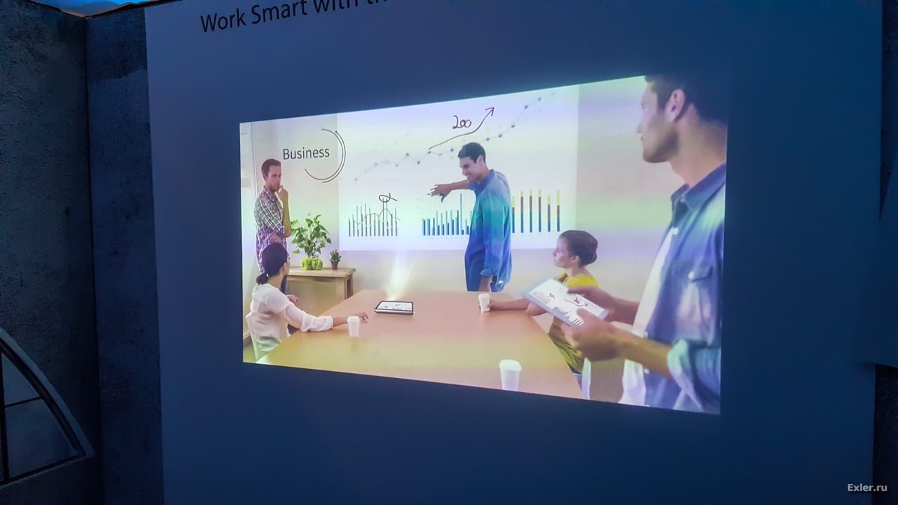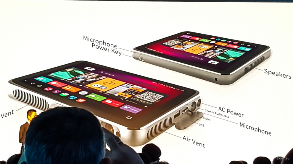 Но вернемся к новому проектору-планшету. Господин Зенг предпочитал о нем говорить как о планшете с проектором. И там даже прозвучала фраза из серии "Мы первые в мире сделали планшет с проектором", после чего я сразу нервно заикал, вспомнив свой Lenovo Yoga Tablet 2 Pro, который, кстати, представляли на MWC всего-то два года назад.