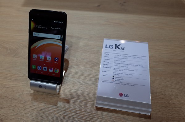 Еще один смартфон - LG K8. 5-дюймовый дисплей, пластиковый корпус, разрешение 1280x720, соотношение сторон 16:9. Памяти 2/16, есть поддержка карт памяти аж до 2 ТБ. Есть сканер отпечатка пальца, но нет NFC. Вот полная спецификация. В Европе будет стоить порядка €120, то есть в России будет менее 10 тысяч рублей.