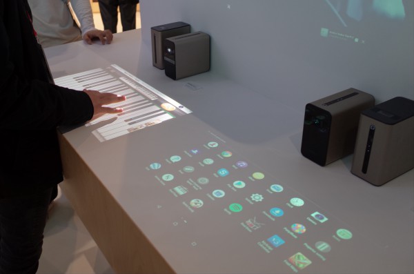 Любопытный гаджет Sony Touch - это интерактивный проектор. Вообще Sony их показывает еще с 2015 года. Сначала это называлось Xperia Projector и его показали в 2015 году. Затем в 2016 году показали усовершенствованную версию. Ну и в прошлом году показали уже эту версию под названием Sony Touch.