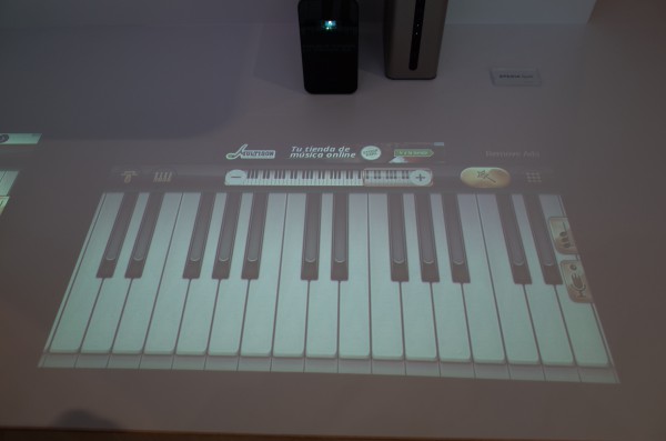 Проектор формирует изображение с диагональю 23" и разрешением 1366х768 точек. Изображение интерактивное - с ним можно работать как с сенсорным дисплеем: скроллировать, нажимать, захватывать и перемещать - в общем, как на обычном планшете.