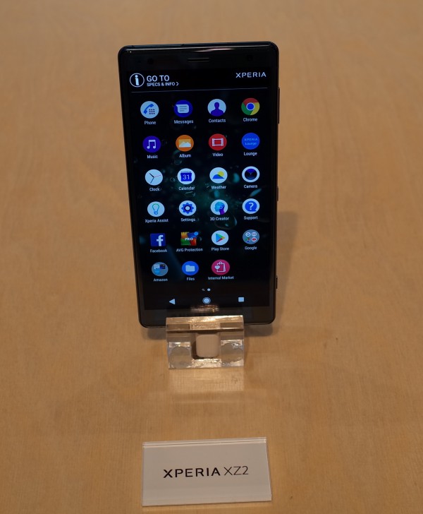 Также на стенде были представлены обещанные новые флагманские смартфоны Xperia XZ2 и XZ2 Compact.