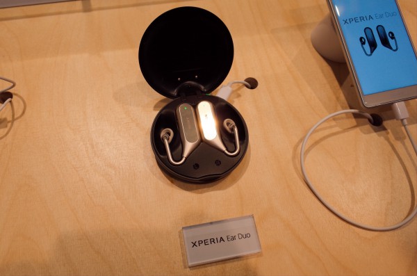 Новинка - беспроводные наушники Sony Xperia Ear Duo. Что-то подобное они уже показывали в виде концепта, но здесь тоже - серийный вариант, который скоро поступит в продажу. Главная "фишка" наушников - технология Dual Listening (двойное слушание), которая позволяет одновременно и слушать то, что воспроизводится в наушниках, но при этом также слышать все, что происходит вокруг.