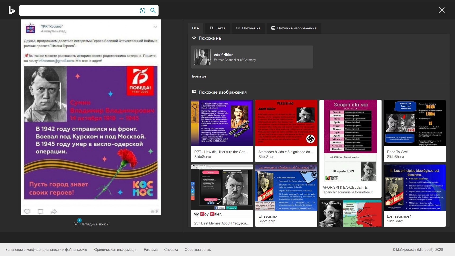 В том и дело, что там была подобрана такая фотография, что даже человек с не очень хорошей памятью на лица узнает Гитлера. И вот это их нелепое оправдание про "редкое фото" попросту смешно.