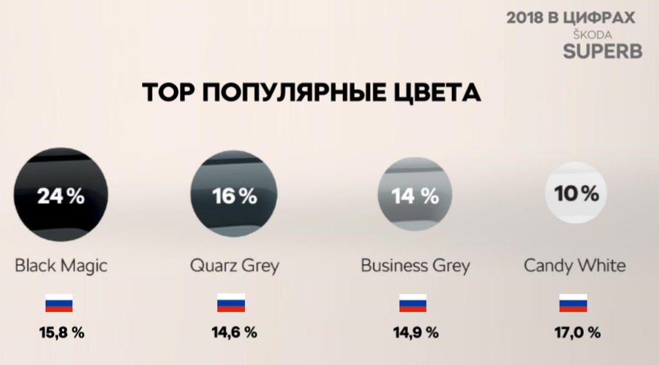 Эта Шкода предлагается в 11 цветах из которых 6 - разные оттенки серого, при чем тут Россия?