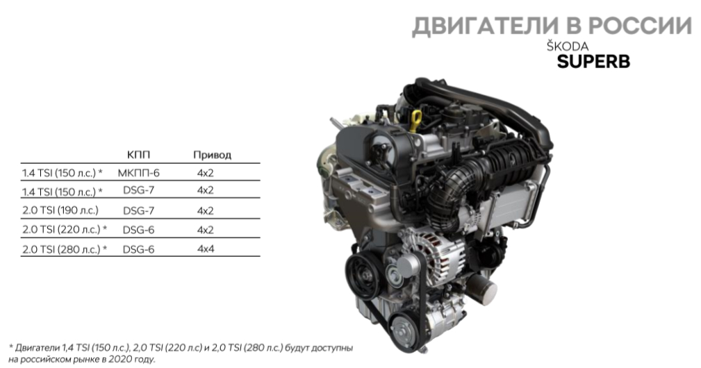Двигатели, которыми новая ŠKODA SUPERB комплектуется в России.