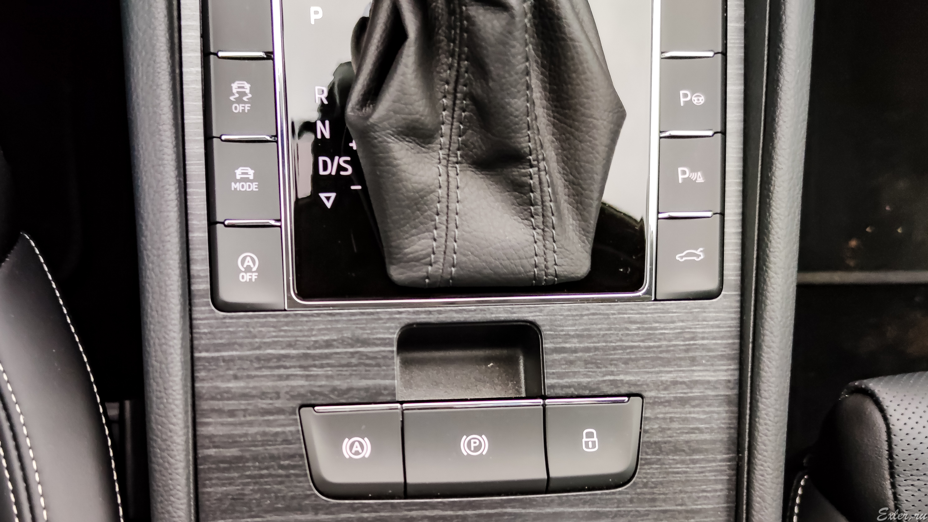 Блок ручки DSG-коробки, открывание багажника кнопкой и включение автоматической парковки.