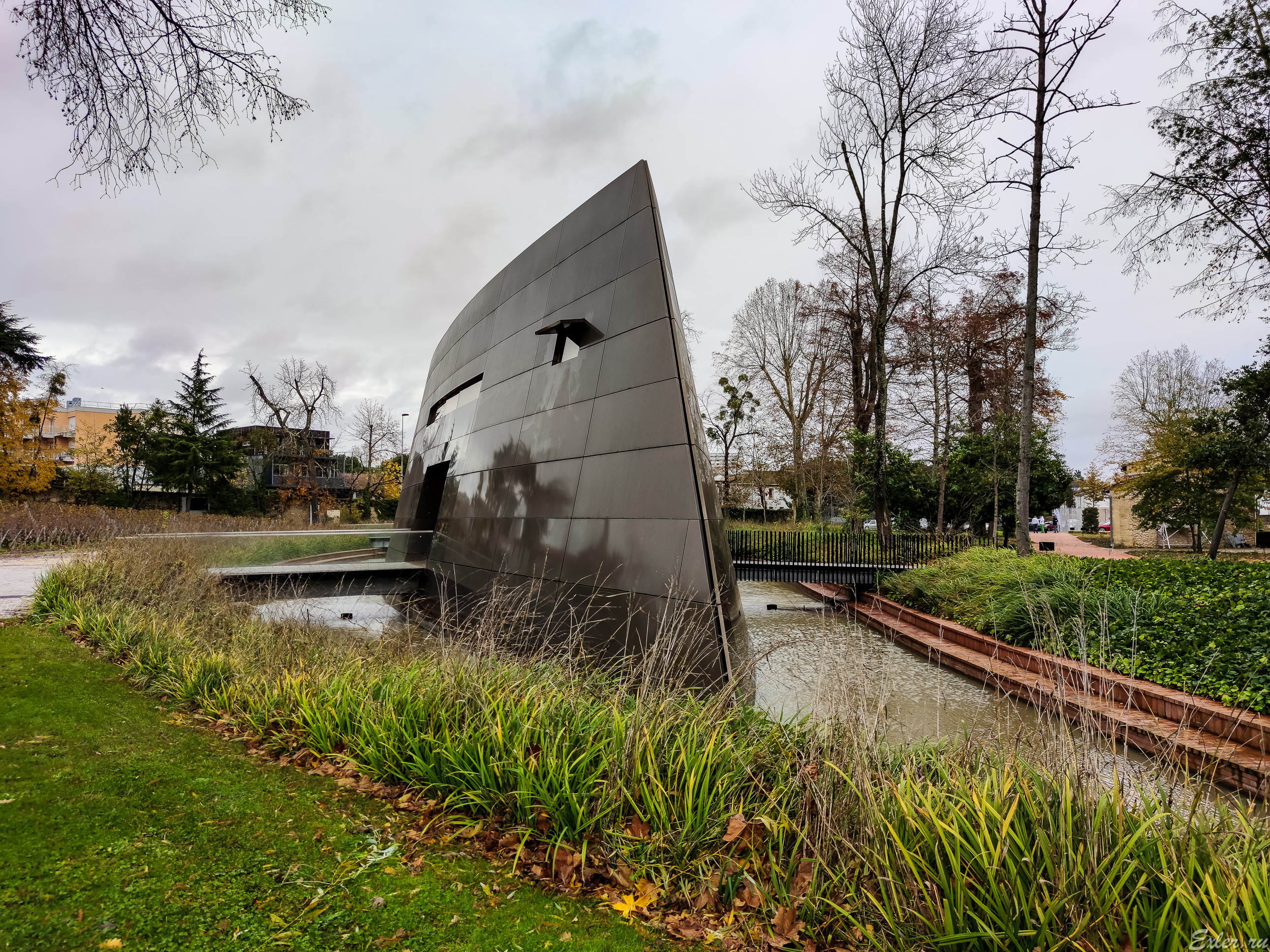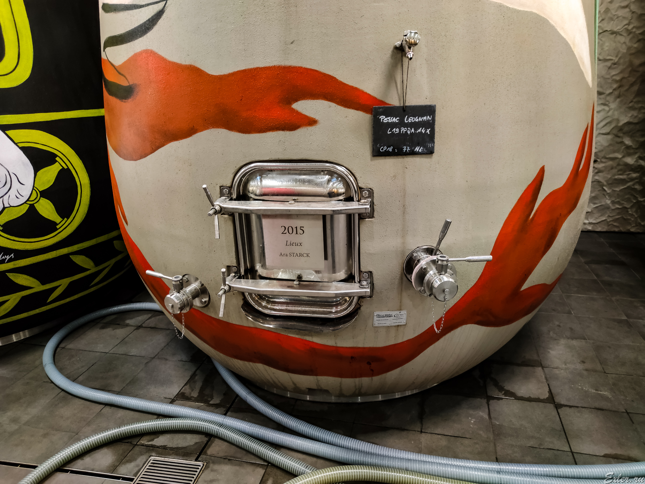 Винодельню проектировал сам Филипп Старк. Она похожа на подводную лодку, располагается в пруду и под землю уходит на два здоровенных этажа.