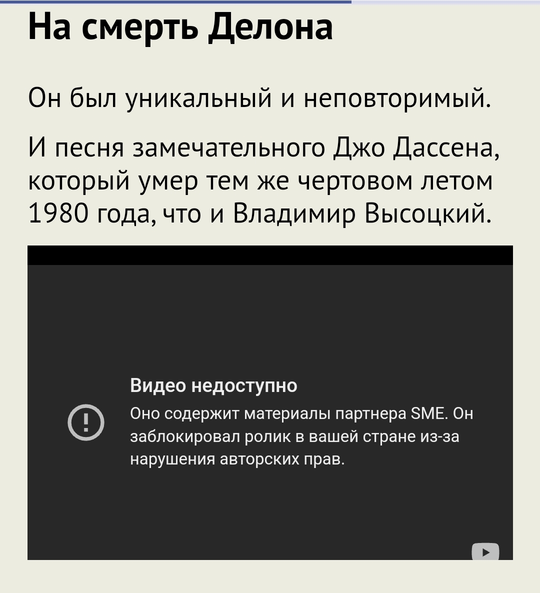 И песня замечательного Джо Дассена, который умер тем же чертовым летом 1980 года, что и Владимир Высоцкий.