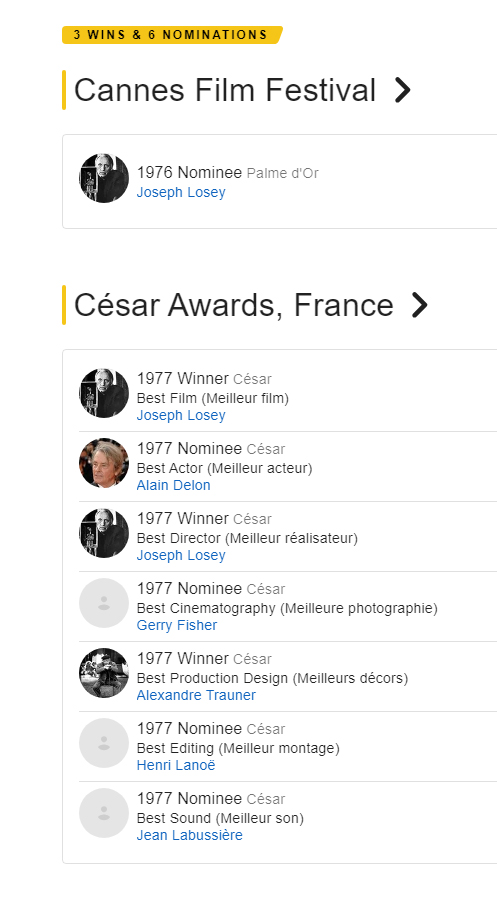 «Месьё Кляйн» получил всеобщее признание критиков и завоевал три премии «Сезар»: за лучший фильм, лучшую режиссуру (Джозеф Лоузи) и лучшие декорации (Александр Траунер). Ален Делон был номинирован как лучший актёр.