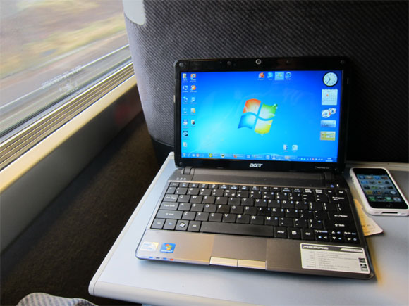 Вагоны очень комфортные, особенно в первом классе. У спинки придыдущего кресла - здоровенный столик, на котором помещается ноутбук, телефон, бутылка вина и мандарин.