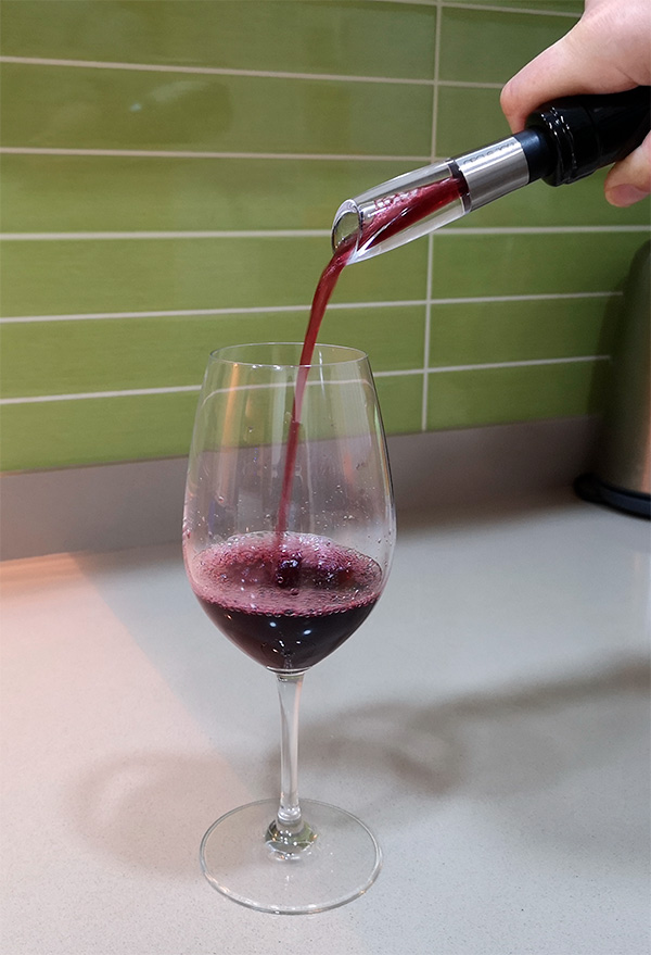 Я много раз сравнивал: один прогон порции вина через аэратор равен где-то 20-30 минутам отстаивания вина в декантере. Поэтому я такой аэратор всегда использую, когда пью красное вино.