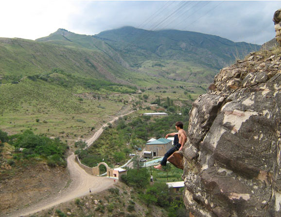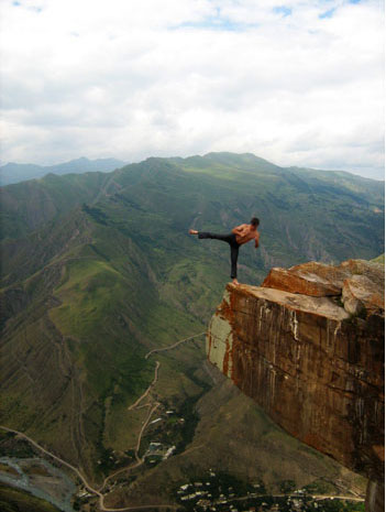 Насколько я понимаю - не фотошоп. Круто мужик развлекается. Это ж какие стальные памперсы нужно иметь, чтобы выделывать такие кунштюки...