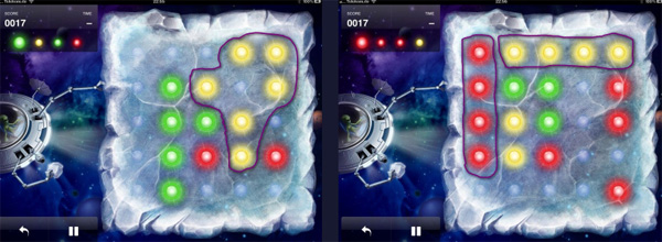 Игра слегка сложнее, чем тот же Lines, но этим и интереснее. Суть игры передать просто: на экране появляется полоска из четырех разноцветных шариков, и вам надо движением пальца эти шарики разместить на игровом поле - в любом виде: линией, квадратом, углом, загогулиной - как интуиция подсказывает. Выглядит это все как рисование пальцем на замерзшем стекле - смотрится очень забавно.