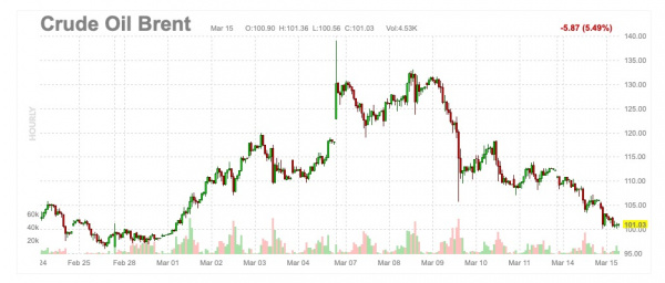 Кстати, о нефти. О ней много писали и говорили, поэтому я ограничусь просто рыночными графиками. Посмотрите, ситуация как с пшеницей: взлет на 30% после 24 февраля к 8 марта, и затем падение до уровня цен 24го февраля всего за неделю. Не верят рынки в нефтяной кризис, и не поверят: Россия не может себе позволить не отгружать нефть – это единственный значимый источник долларов. Запретят (если) продавать на нормальном рынке – поедет нефть, как иранская, в Китай с огромным дисконтом, но на рынке останется. А параллельно добыча других стран OPEC и США растет, Иран и Венесуэла увеличат отгрузки. В конце концов максимальный экспорт российской нефти составлял 5% от мировой добычи, и доля России и так снижается. Возможно к концу 2022 года мир сможет отказаться от Российской нефти совсем и конечно мир откажется от неё – не к концу года так чуть позже (но как я уже сказал – даже в случае эмбарго она пойдет нелегально в Китай за гроши). Но на цены это уже не влияет и влиять не будет.