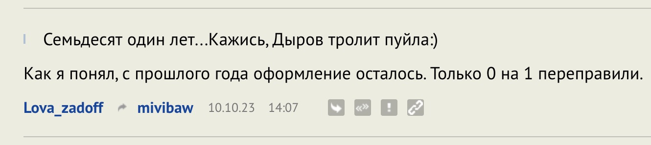 Кстати, если уже 71 - то пошёл семьдесят второй. Точно троллит! 😄