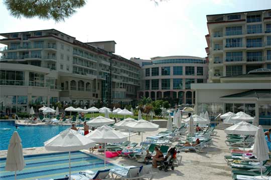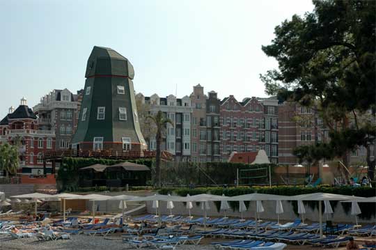 Наконец-то мы в этом году выбрались на море - в Турцию. Отель выбрали не сразу: мы не любим ездить в отели, в которых уже были, даже если там вполне понравилось, но одновременно не хотели попасть черт знает куда. Впрочем, правильная схема действий нами изучена достаточно давно, и она вполне простая: нужно не жлобиться и потратить соответствующее количество денег - тогда даже первый попавшийся отель (за соответствующие деньги) будет вполне нормальный. Единственное здесь - предварительно узнавать, когда построен отель или когда его полностью перестраивали, потому что в старые отели ездить категорически не рекомендуется. В прошлый раз мы были в Zeugma Papillon, который находится под Белеком, и это роскошный отель. В этот раз сначала хотели было поехать в Orange Country - это отель, сделанный под Амстердам, и он очень забавный и красивый, - однако по ценовой категории он был слегка ниже, чем нужно, да и говорили, что у него территория очень маленькая. Поэтому мы выбрали тот отель, который нам рекомендовала хорошая знакомая - Kemer Resort, расположенный, что характерно, в Кемере. Там мы еще не были. Были в Белеке, Сиде, Манавгате. Очень хотели разок поселиться где-нибудь в Фетхие, на Эгейском море - там обстановка заметно отличается от района Анталии, но решили, что в следующий раз.