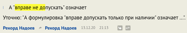 Так вот, если вы почитаете мой комментарий от 20:09 МСК, то я как раз и говорил о том, что если бы было "вправе не допускать", то это действительно давало бы возможность администрации заведений решать самим.