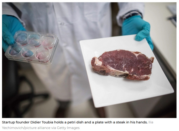 В статье журналистка беседует с генеральным директором израильского стартапа Aleph Farms, в котором вроде как научились выращивать куски мяса из клеток коров. Утверждается, что конечный продукт биологически полностью идентичен тому, что вы получаете в мясной лавке или супермаркете.