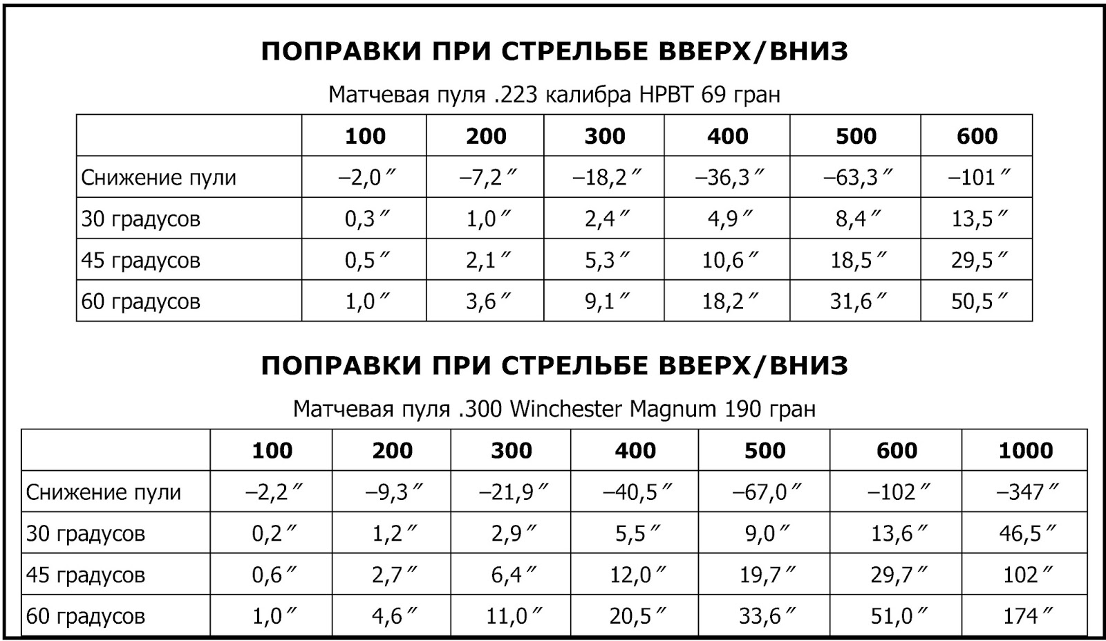 пуля идёт выше точки прицеливания по сравнению со стрельбой примерно в горизонт