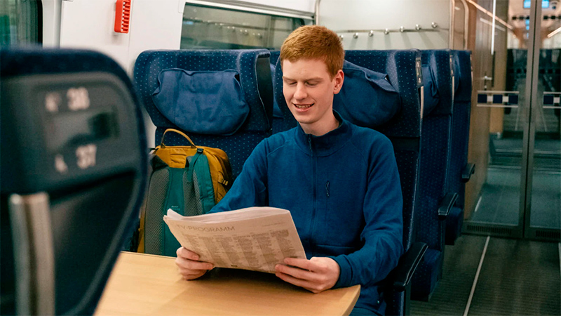 Лассе купил карту Bahncard 100 First Class, обошедшуюся ему с молодежной скидкой в €5880: она дает право путешествовать в первом классе поездов DB в течение целого года. Вот он и путешествует, разъезжая туда-сюда. Спит в ночных поездах, завтракает в залах ожидания DB, душ принимает в общественных бассейнах, одежду стирает вручную в раковинах в залах ожидания. Днем он в поезде работает программистом-фрилансером: что-то такое делает для стартапа из Кёльна.