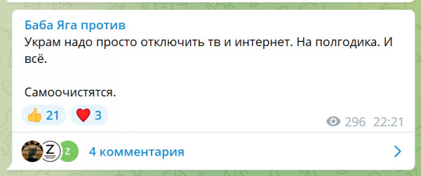 Но при этом, скажем честно, местечко в иерархии скотобазы Радулова занимает совсем маленькое. Ей даже в ее телеграм-канал ботов не нагнали, там подписчиков - кот наплакал. И Наташа все жалуется, что еще и дених не плотют, а как без дених-то Родину любить, действительно?