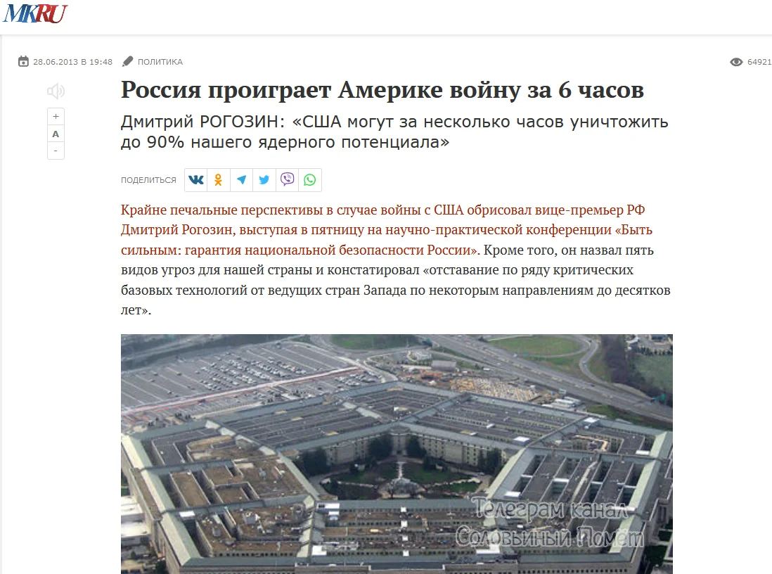 И не надо упоминать ЯО, оно у обеих сторон есть. ПРО стран НАТО себя уже очень неплохо показало, а вот протестировать ПРО РФ пока как-то случая не предоставилось.