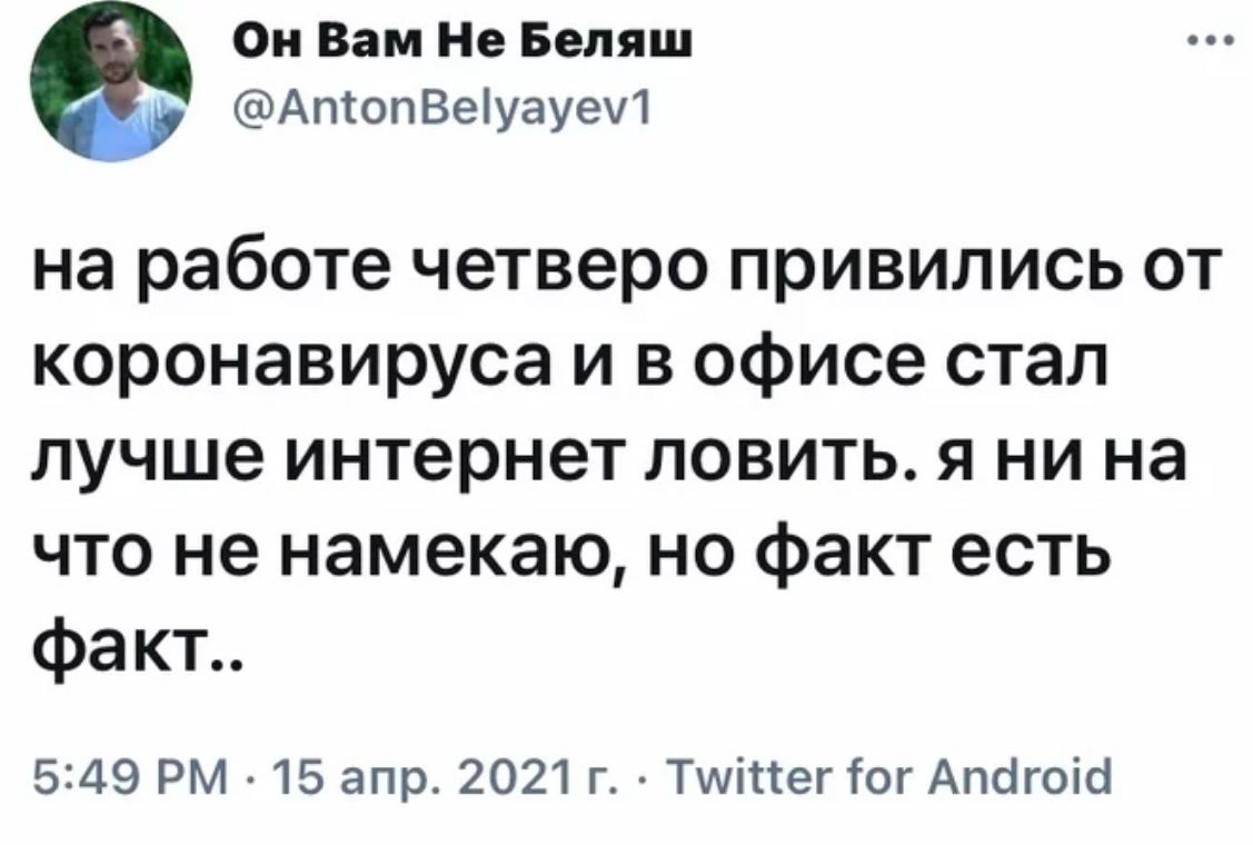 Ну я надеюсь у Пфайзера то чип 5G все таки, как у Спутника, не какой нибудь там устаревший LTE? Чтоб значит скорость передачи данных в ЦРУ была моментальной, чтоб русские кулхацкеры не могли перехватить!