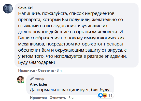 Вакцина состоит из ГМО и консервантов, а все знают, что это крайне опасная комбинация. Вирус тоже не дурак, - сбежит сразу как поймет куда попал.