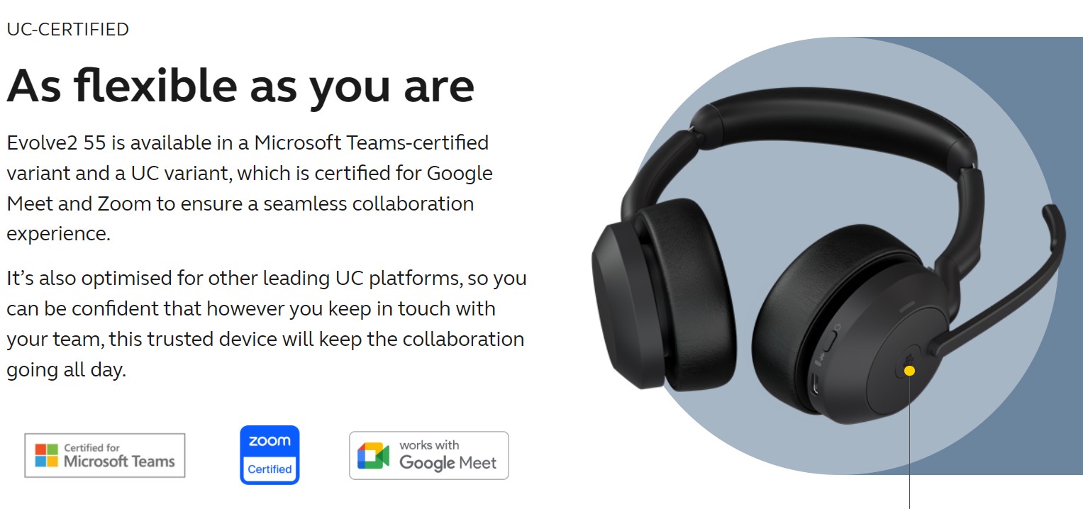То же самое, только Jabra Evolve 2 65. Минус - сваливаются с головы при наклоне вперёд-назад, ну и микрофон внешний. Плюсы - качество звука, аккумулятор держит неделями, держат связь по Bluetooth чуть ли не дальше, чем бьёт WiFi (другой этаж, противоположная сторона дома, через бетонный потолок и несколько стен, по прямой метров 10 - без проблем).