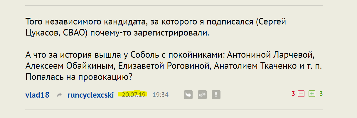 "И собрали огромное для пустой Москвы количество подписей, в нереально короткий срок с 17 июня по 10 июля. Но после финальной проверки, которую вели весь вчерашний день, вечер и ночь, брак в подписных листах превысил 20 %. Поэтому на настоящий момент подписей меньше, чем можно подать в избирком. Времени дособирать не осталось.