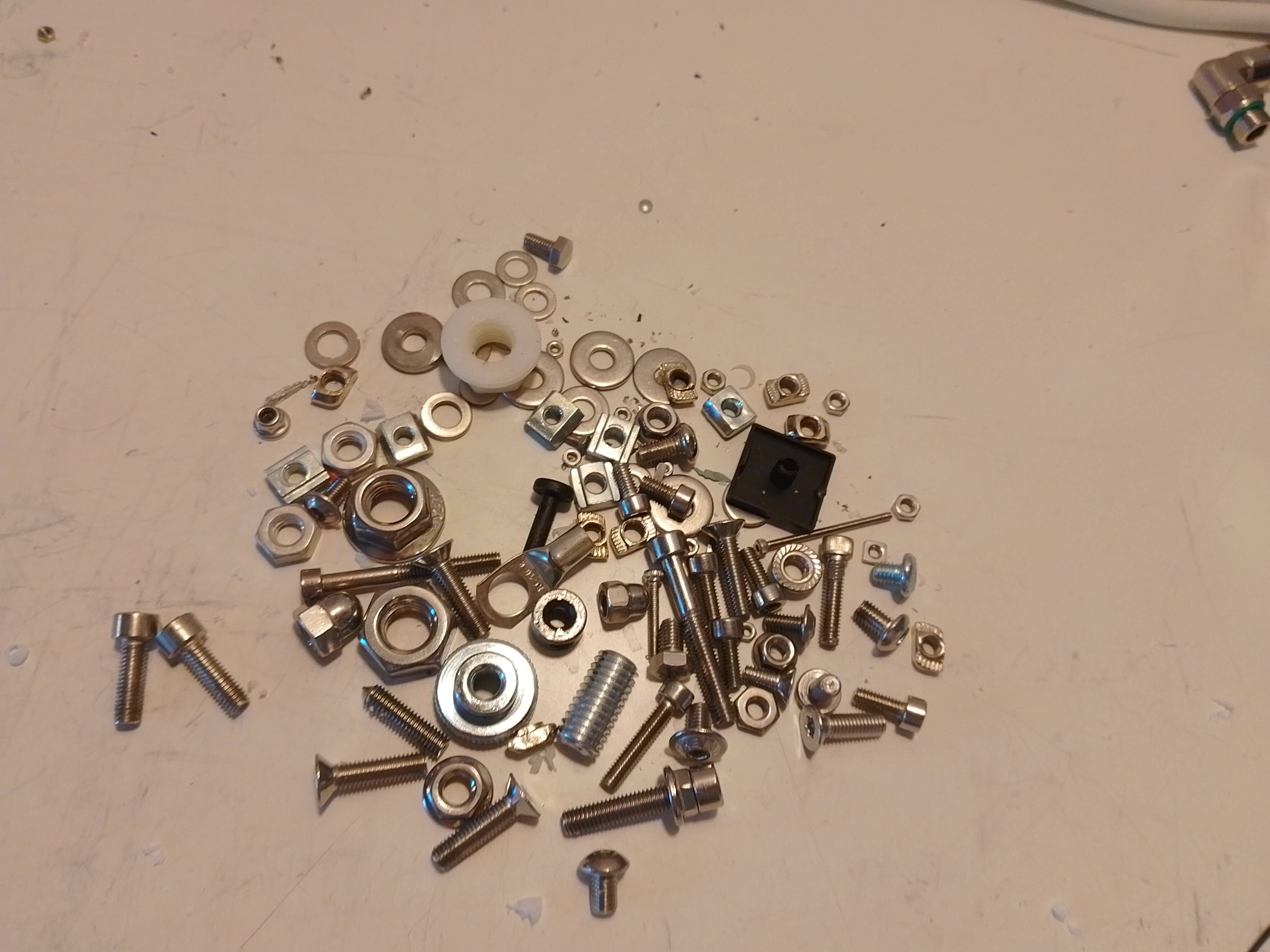 в маленькой горке на Рис. 1 минимум 30 типов крепежа, каждый из которых обитает в своем пакетике в своем ящичке в своем столе.