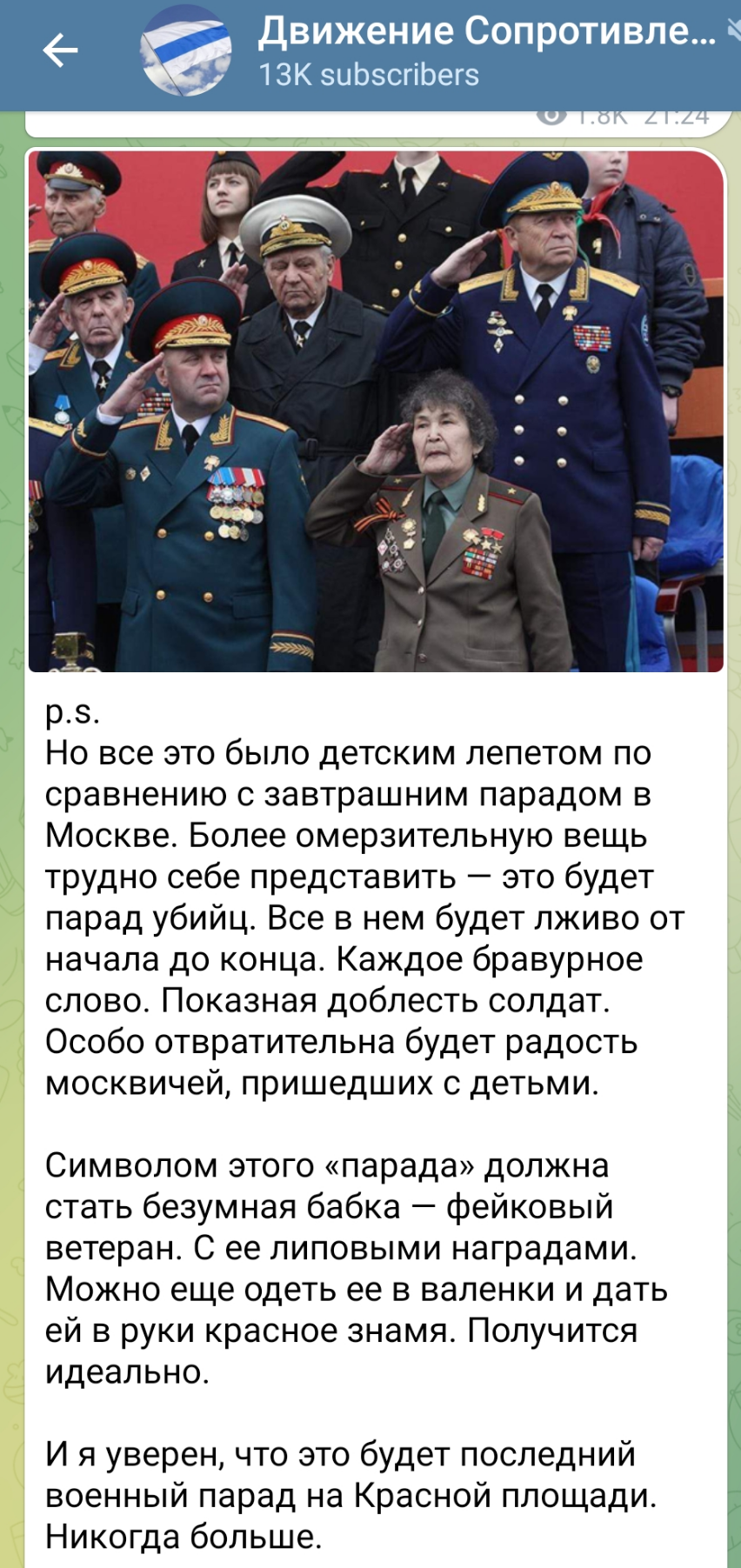 Шабаш начался еще раньше, когда из дня траура и скорби сделали милитаристский "праздниквеликойпобеды" - маскарад с "наберлинможемповторить", детками в военной форме, свежевыкрашенными танчиками с розовощекими лейтенантиками в башенных люках и тп. Слава Богу, мне удалось 25 лет назад вывезти маму сюда. В Канаде она в последние годы жизни получила во сто крат больше уважения, чем на родине...
