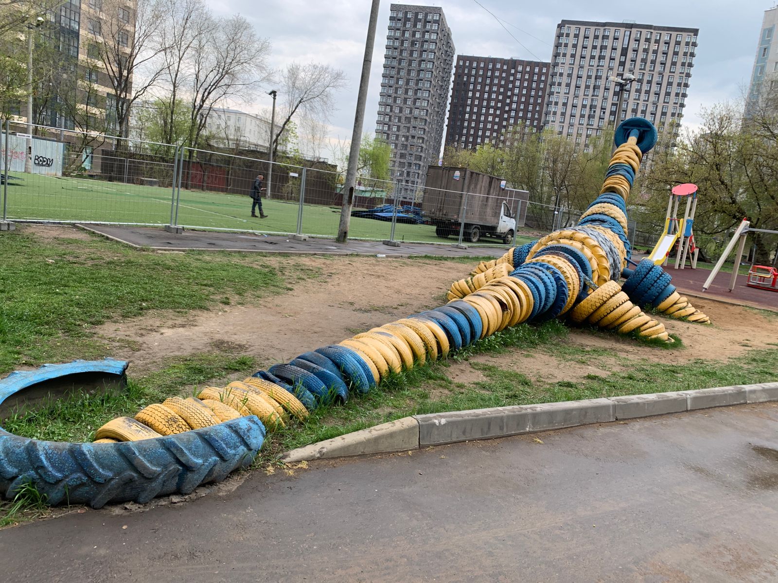 Оффтоп. Приехал недавно надеюсь ненадолго в Москву. И вот такого украинского дракона обнаружил во дворах. Не знаю что символизирует.