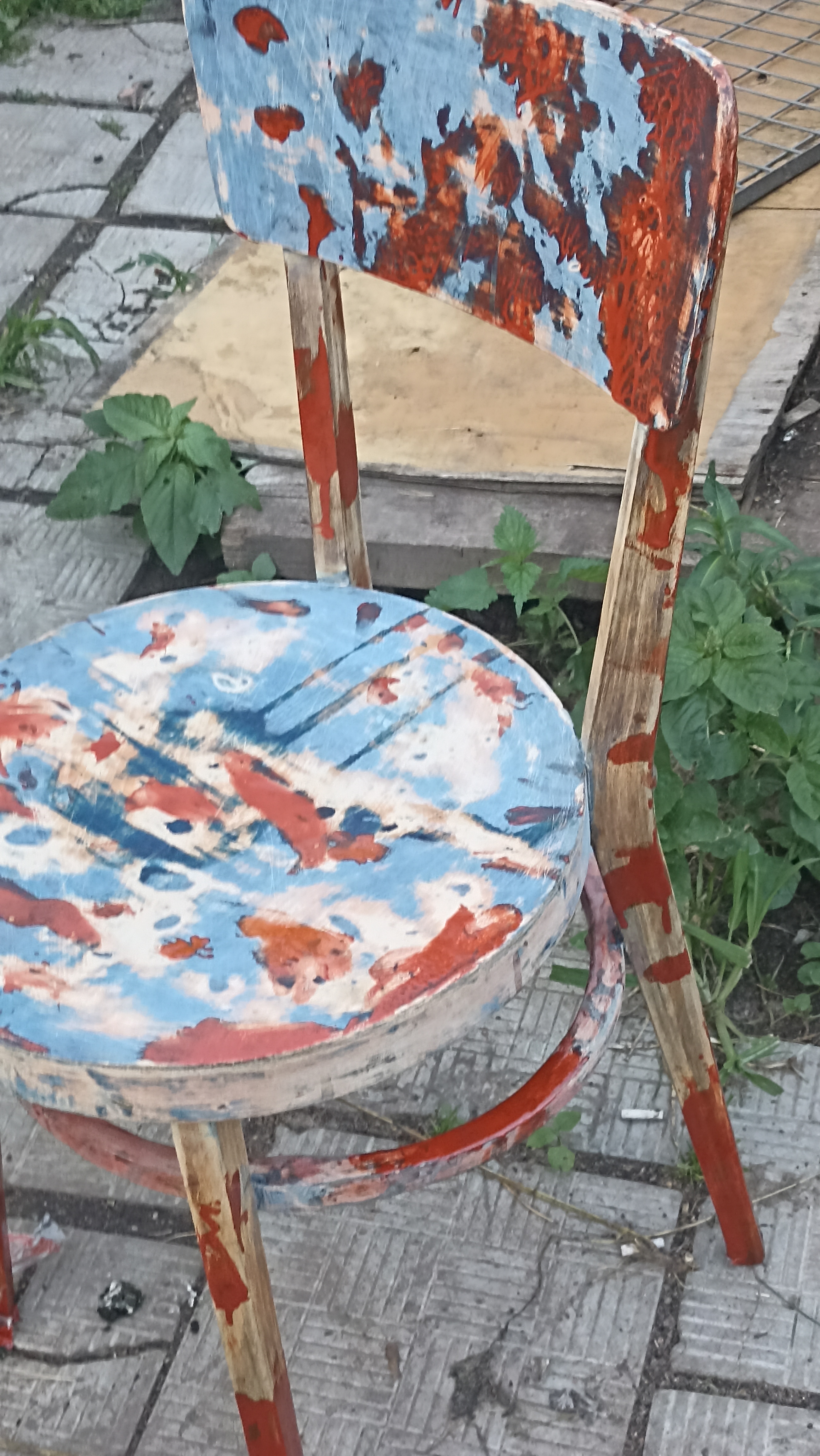 сам процесс сажания разноцветных пятен понравился. Честно. Стул теперь очень крепкий. Это эпоксидка с пигментами.