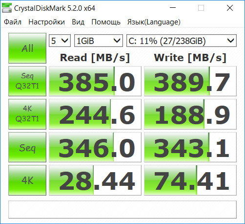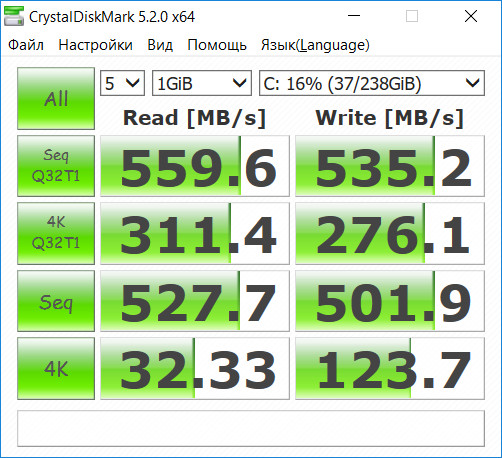 Вот результаты моего, уже почти наполовину заполненного, полутеррабайтника (у пустого скорости были несколько повыше):