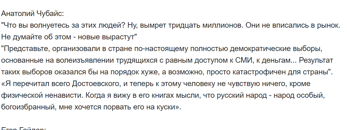 Вот кто мы все - по мнению Чубайса. Так бизнесу-то спасибо и не сказали, твари! Устыдились?