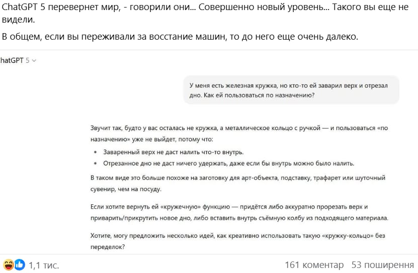 Наткнулся недавно в ленте на фэйсбучике, насчет недавнего релиза GPT-5.