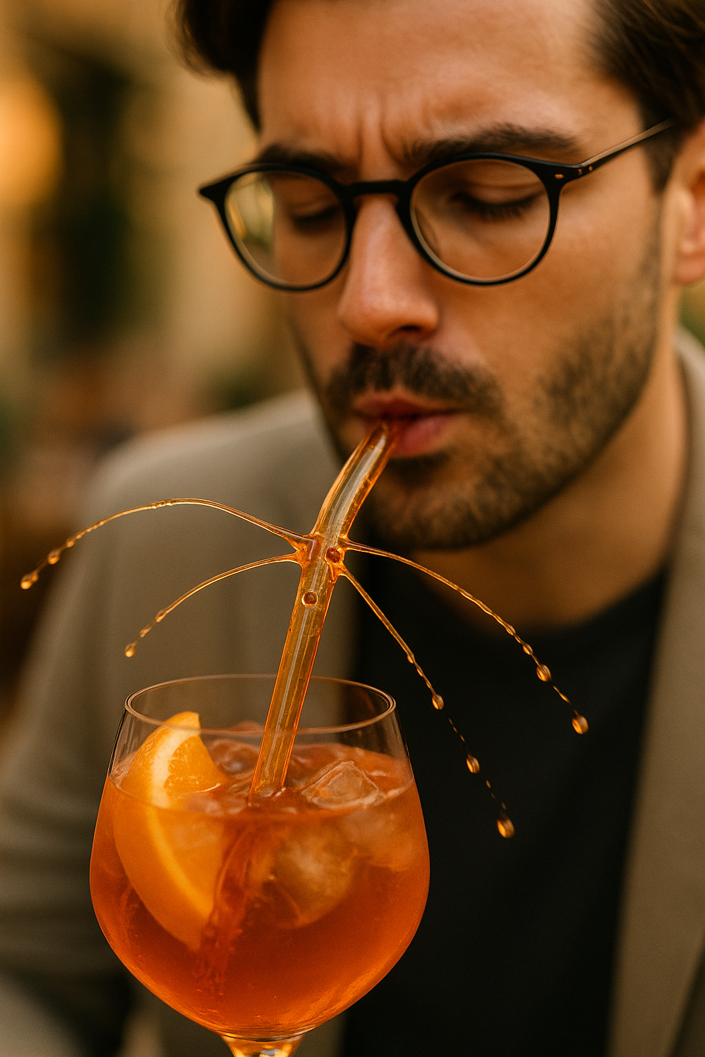 Один из бокалов медленно наполняем (льдом, стальными шариками и тп) слизывая с поверхности поднимающуюся жидкость.