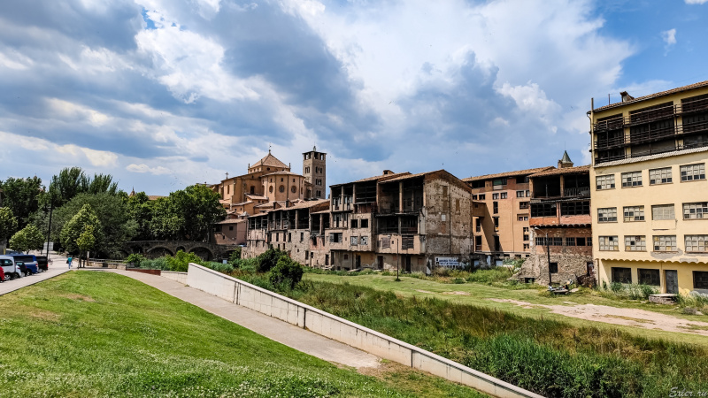 С трудом нашли парковку, запарковались. Задняя часть местного храма позировала на фоне страшновато выглядящих полуразрушенных домов.