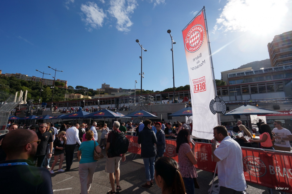 Вообще там на этой площадке было очень весело. Прямо перед отелем идет один из самых сложных поворотов "Формулы", и по этой дороге периодически подъезжали всякие суперкрутые тачки, дико ревя движком, заезжали ко входу отеля, красовались под приветственные фотовспышки гуляющих, после чего, снова дика взревывая движком, куда-то уезжали. Прям обстановка веселой автомобильной шизы.